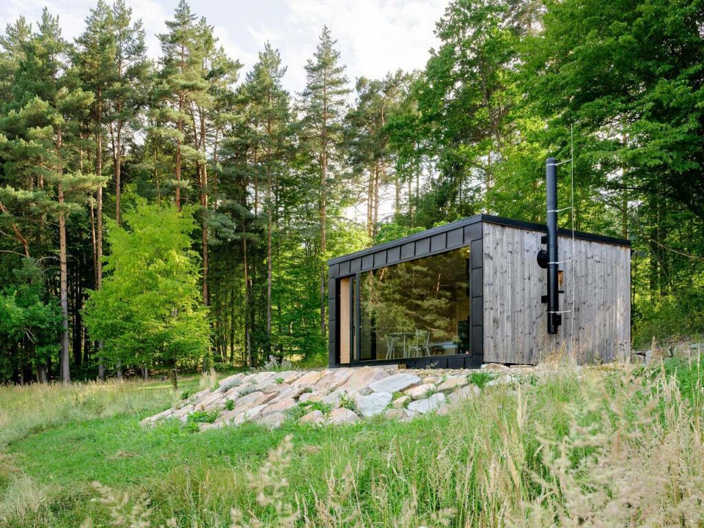 Když sejdete pár schůdků dolů od maringotky, dostanete se do zarostlého, pískovcového lomu, kde je v malebném údolíčku schovaná finská sauna a ochlazovací káď. Můžete tady však také jen relaxovat a číst knížku v houpacím křesle.